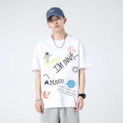 男装短袖T恤夏季韩版潮牌宇航员男士半袖体恤纯棉打底衫