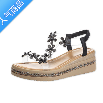 SUNTEK坡跟凉鞋女妈妈2023年新款厚底百搭夏季女鞋松糕底平底鱼嘴罗马鞋