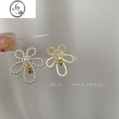 JiMi珍珠花朵耳环高级感轻奢独特耳饰小众设计耳钉无耳洞蚊香盘耳夹女
