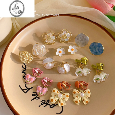 JiMi小清新花朵蚊香盘耳夹无耳洞女生2023年新款潮小众设计高级感耳饰