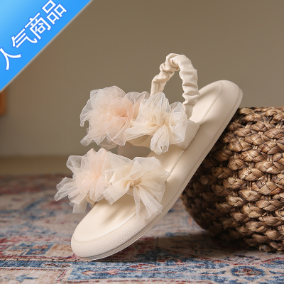 SUNTEK网红两穿凉拖鞋女ins潮2023新款仙女风花朵一字带平底沙滩凉鞋女