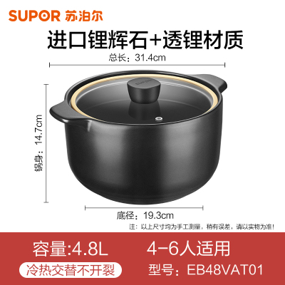 苏泊尔(SUPOR)砂锅陶瓷煲家用砂锅耐高温煲汤锅家用炖锅煲仔饭沙锅养生汤煲明火专用--4.8L