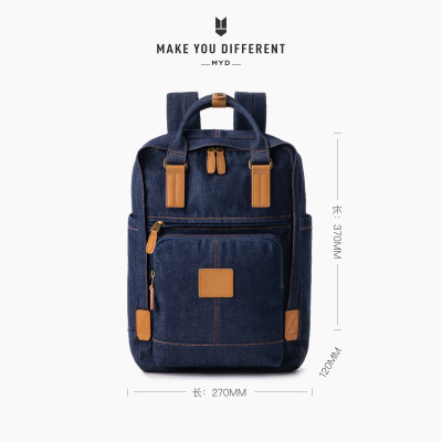 MYD双肩包女轻便时尚休闲百搭书包原创小众牛仔布14寸电脑背包男