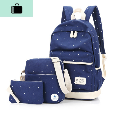 帆布双肩包女生三件套学院风大高中生旅行背包波点初中学生书包男NEW LAKE