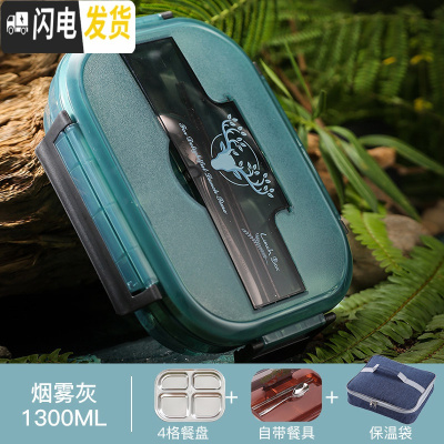 三维工匠316不锈钢饭盒上班族注水保温便当分隔型餐盒学生儿童 [316不锈钢-内置餐具]米亚蓝4格-1300+饭盒袋