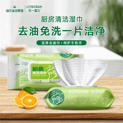 海氏海诺 厨房湿巾80抽*4包 去油去污家用油烟机清洁去油污湿纸巾加大