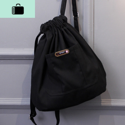 森系大容量水桶抽绳双肩包男女跑步休闲帆布背包学院风简易书包NEW LAKE