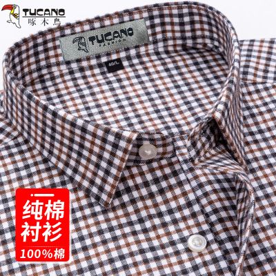 啄木鸟纯棉格子衬衫男长袖2025春季新款商务休闲中年爸爸男士衬衣