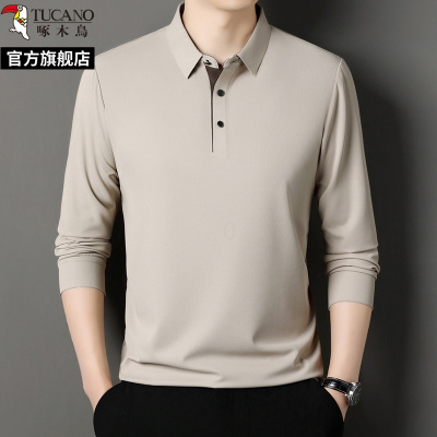 啄木鸟2025春秋季新款商务休闲长袖翻领polo衫男中年爸爸上衣