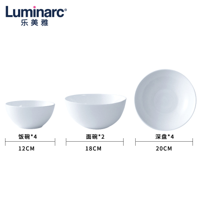 乐美雅迪瓦丽白玉钢化耐高温玻璃碗盘碟家用餐具饭碗面碗菜盘深盘组合10件套