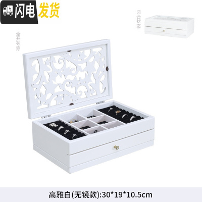三维工匠首饰盒欧式实木质饰品盒复古收纳盒公主耳钉盒珠宝盒 典雅款雪山白色