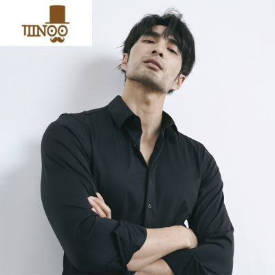 YANXU高科技无缝免烫 轻熟男商务冰丝长袖衬衫男士免烫弹力卡其衬衣男