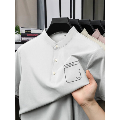 夏季短袖POLO衫男纯色立领休闲T恤男中年宽松透气爸爸装打底上衣