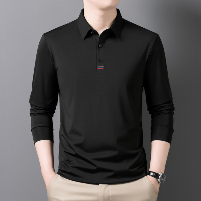 涤氨无缝纯色男士POLO衫秋季新款中年休闲翻领长袖T恤男