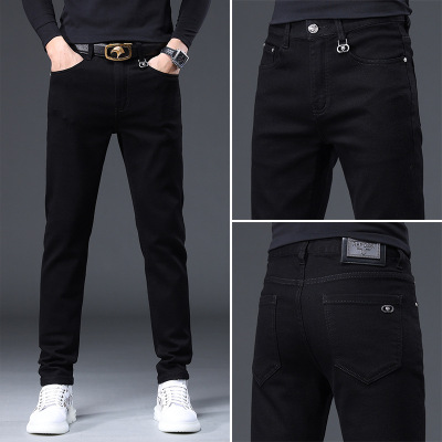 欧货高端纯黑色牛仔裤男春秋新款潮牌修身小脚弹力休闲长裤子
