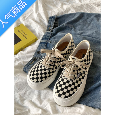 SUNTEK帆布鞋女鞋学生2023年新款夏季百搭ulzzang黑白格子布鞋板鞋