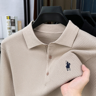 新款菠萝纹针织长袖POLO衫男士翻领刺绣上衣T恤针织衫