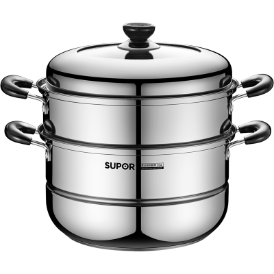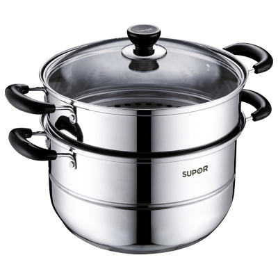 苏泊尔(SUPOR)304不锈钢蒸锅双层复底汤锅蒸笼大容量高拱盖家用电磁炉燃气 EZ30BS04送隔热手套、碗碟夹或汤勺