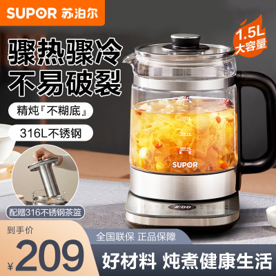 苏泊尔(SUPOR)养生壶 电水壶 迷你燕窝 炖盅养生锅 加厚玻璃 多功能煮茶壶 1.5L/容量 SW-15Y18