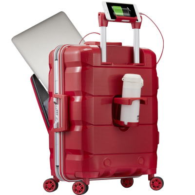Lucky Club高颜值前置电脑行李箱男女密码开口商务旅行小型多功能拉杆箱子子母箱24寸铝框红