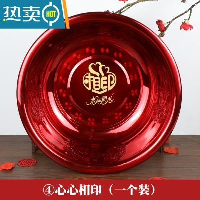 JING PING结婚喜盆女方陪嫁红盆套装新娘婚庆用品不锈钢脸盆一对红色洗脸盆