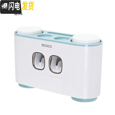 三维工匠牙刷置物架壁式免打孔漱口杯刷牙杯挂墙式卫生间壁挂吸壁牙具套装 四杯+双挤牙膏器-睿智蓝牙具座