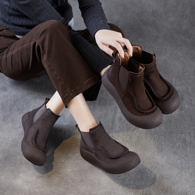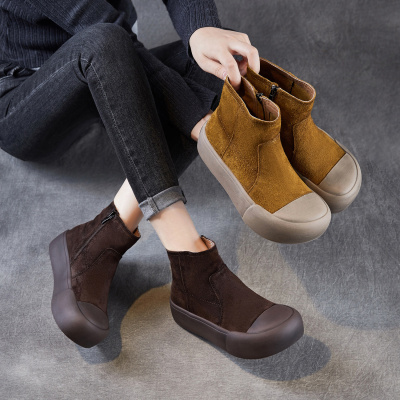 真皮短靴女秋季新款休闲丑萌大头女鞋复古圆头舒适单靴马丁靴