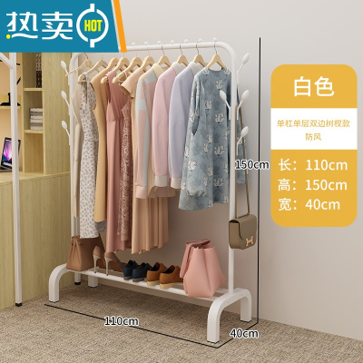 敬平晾衣架落地挂衣架学生宿舍用室内置物卧室晒衣架家用晾衣服杆架子 单杆单层(双边树杈)-白色[室外防风款]