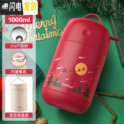 三维工匠316不锈钢焖烧杯女闷烧壶焖粥超长保温饭盒饭桶保温桶便携 316不锈钢[圣诞鹿款]1000+内置餐具+保温袋