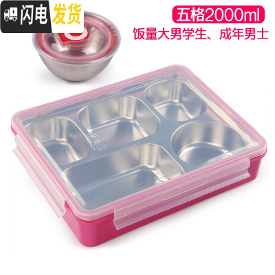 三维工匠韩国成人饭盒儿童便当盒小学生分格不锈钢餐盘五格餐盒带盖上班族 2000五格粉透明+内置碗
