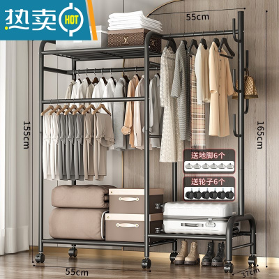 敬平多功能晾衣架落地家用卧室简易折叠晒衣服室内置物挂衣架凉衣杆子 热卖?110cm-三杆带顶+挂包区+置物区+三合一-酷