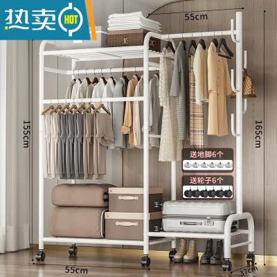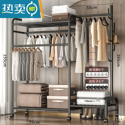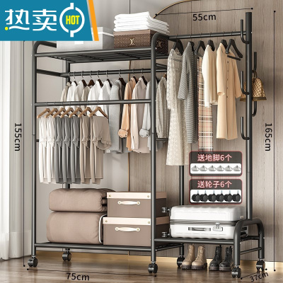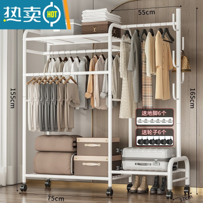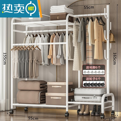 敬平多功能晾衣架落地家用卧室简易折叠晒衣服室内置物挂衣架凉衣杆子 热卖?150cm-三杆带顶+挂包区+置物区+三合一-酷