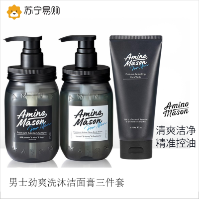 阿蜜浓梅森 甄选男士氨基酸劲爽洗发水//沐浴露//醒肤洁面膏 清爽控油洗护套装
