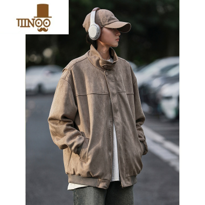 YANXUBeautget秋季美式复古绒立领夹克情侣ins设计感小众外套男潮
