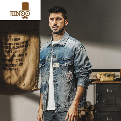 YANXU美式复古牛仔外套男款重工水洗帅气潮流秋季夹克男