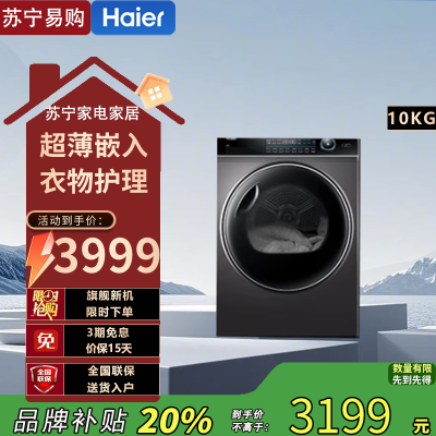 [政府补贴15%]海尔(Haier)全自动10千克超薄零嵌洗烘一体滚筒洗衣机直驱精华洗银离子除菌