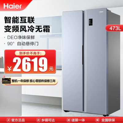 海尔(Haier)473升对开门嵌入冰箱 智能互联 变频风冷无霜 DEO净味保鲜 BCD-473WGHSS9DG9U1