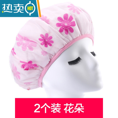 敬平三合一双层浴帽加厚成人淋浴防水焗油浴帽发膜快速干发帽吸水 2个装 花朵