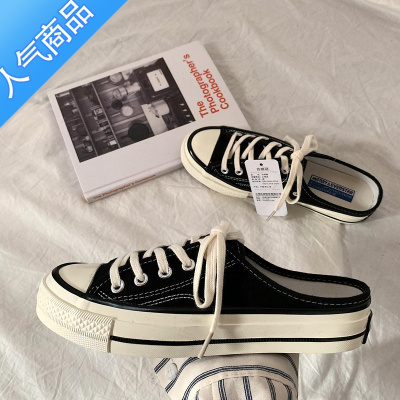 SUNTEK 半拖鞋女帆布鞋港味百搭韩版学生夏季懒人小白鞋无后跟潮