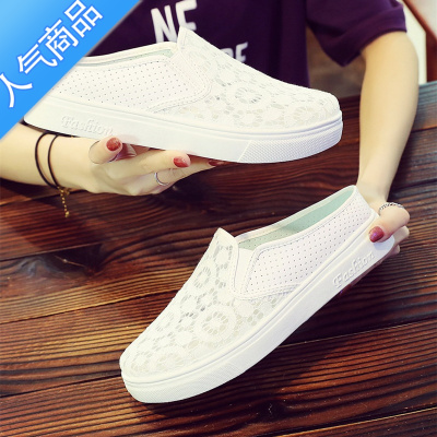 SUNTEK夏季半拖鞋女凉拖网鞋韩版时尚外穿包头平底一脚蹬懒人小白鞋