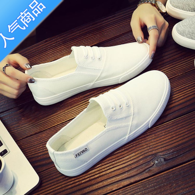 SUNTEK护士帆布鞋平底韩版百搭透气拖鞋一脚蹬女鞋懒人小白鞋休闲布鞋子