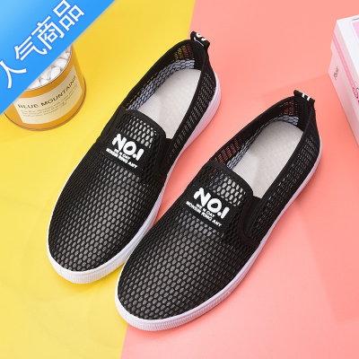 SUNTEK夏季新款老北京布鞋网鞋女韩版百搭透气休闲鞋平底一脚蹬懒人小白