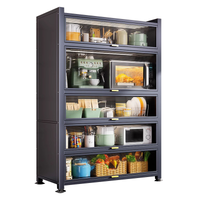 厨房置物架落地多层收纳柜子微波炉家用带门多功能橱柜防尘储物柜