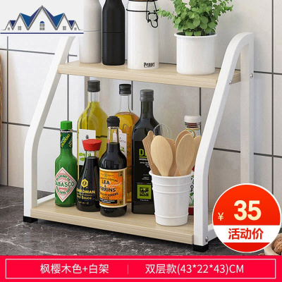家用厨房置物架免打孔桌面微波炉架子光波炉双层多层调味料烤箱架 三维工匠