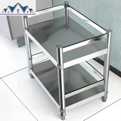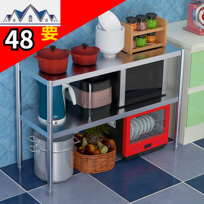 不锈钢厨房置物架2层 落地式多层收纳架双层微波炉橱柜架家用货架 三维工匠