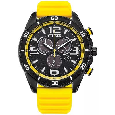 西铁城(CITIZEN)Citizen男士运动休闲手表石英表黑盘黄硅胶带防水耐用潮流手表