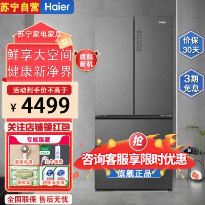 海尔(Haier)零嵌入家用三门电冰箱大容量变频一级能效406升超薄全空间保鲜干湿分储彩晶EPP超净