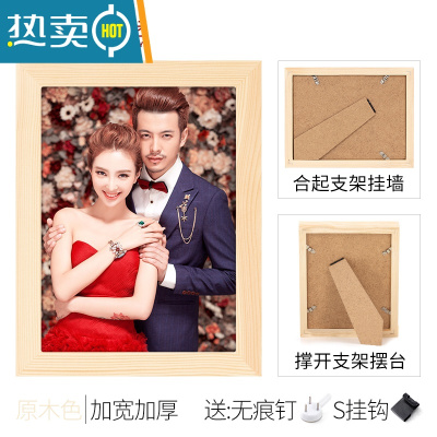 敬平实木挂墙相框摆台6六7七寸8 照片打印加定制情侣相册礼物A4纸画框 原木色+洗照片 摆挂两用 32K[可放13.3X