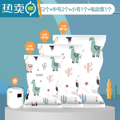 敬平真空压缩袋行李箱专用衣服电动泵家用被子羽绒服抽压缩收纳袋家用 6件套[大号2个+小号3个+电动泵1个] 一年漏气包退
