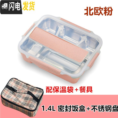 三维工匠密封饭盒 304不锈钢成人便当盒学生上班族微波炉专用分格保温餐盒 北欧粉密封饭盒+不锈钢盘+保温袋(送餐具)